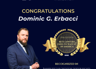 Attorney Updates | September 17, 2025 Dominic G. Erbacci Recognized in the 2026 Edition of Best Lawyers: Ones to Watch® in America Read More